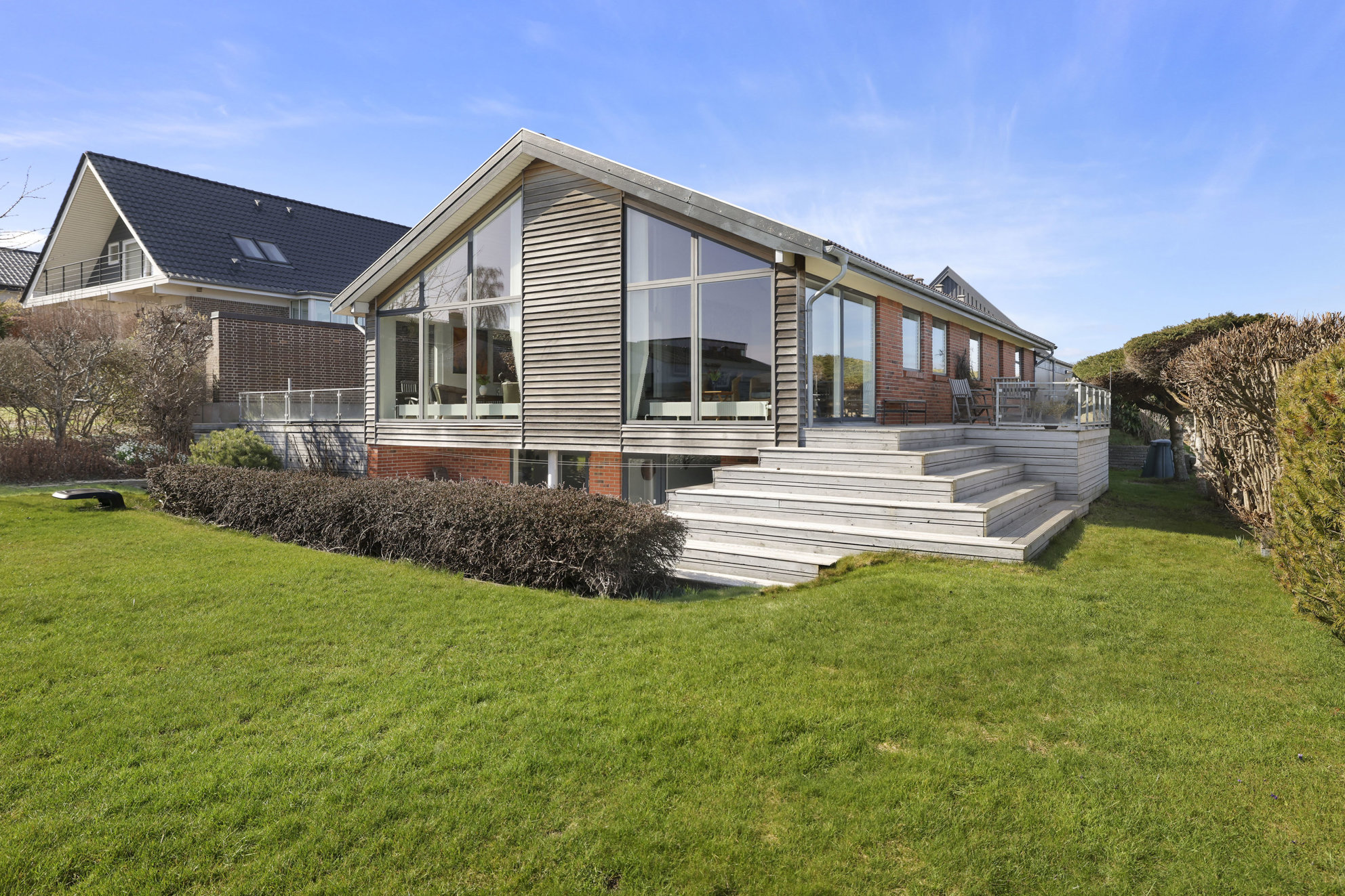 De store, grønne zoner smelter sammen med kystens åbne horisont, så du hurtigt kan skifte parken ud med en tur langs vandet. Strandpromenader, kyststier og rolige villaveje skaber rammerne for et aktivt hverdagsliv tæt på naturen.